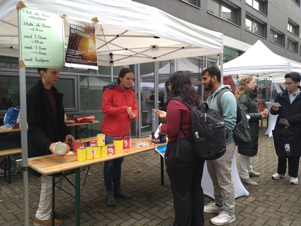 Autor: ESG Magdeburg | Dienstag, 7. Oktober 2025 akb Die ersten Ersties haben den Weg zur ESG gefunden - wir hatten einen schönen Abend miteinander. Am nächsten Vormittag waren wir dann auf dem Markt der Möglichkeiten mit einem Stand - das Dosen werfen war eine richtige Attraktion.