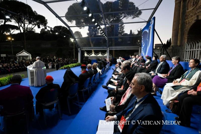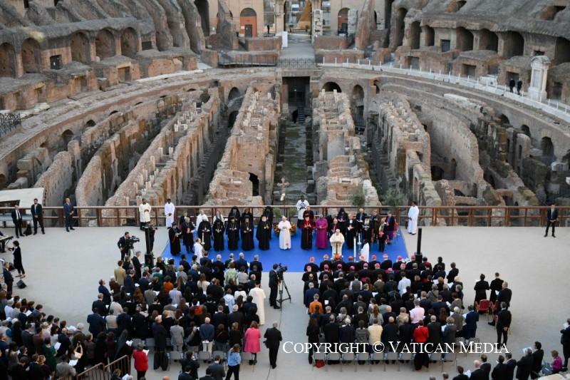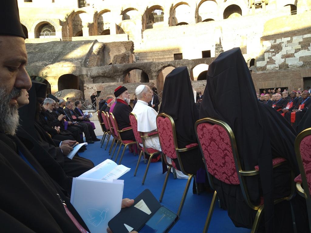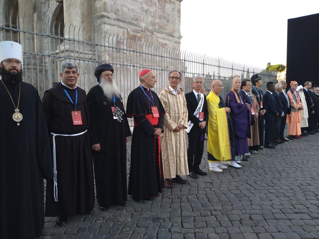 Am Montag Nachmittag feierten die verschiedenen Religionen getrennt voneinander, aber in räumlicher Nähe, Friedensgebete. Die verschiedenen christlichen Religionen feierten gemeinsam mit dem Papst im Colosseum ein Friedensgebet. Die Abschlussveranstaltung war dann für alle gemeinsam, der Papst hielt eine beeindruckend klare Rede. Nächstes Jahr, zum 40. Jahrestag des ersten interreligiösen Friedensgebets, wird das Treffen wieder – wie vor 40 Jahren – in Assisi stattfinden.
