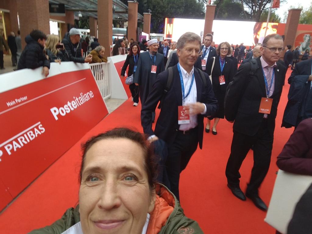 Mit einer bewegenden Abschlusszeremonie ging das internationale und interreligiöse Friedenstreffen, dass vom 26.-28.10. in Rom stattfand, zu Ende. Nach einer sehr offiziellen und beeindruckenden Eröffnungsveranstaltung fanden am Montag und Dienstag 20 verschiedene öffentliche und kostenlos zugängliche Panels statt, mit jeweils 7-9 TN aus den verschiedensten Religionen. Als evangelische Pfarrerin war Angela Kunze-Beiküfner eingeladen, etwas über die Kraft des Gebets für den Frieden zu sagen.